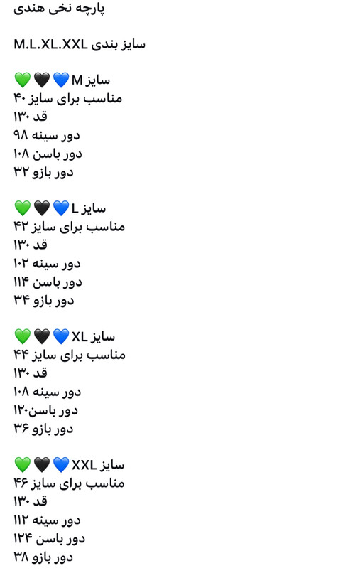 رنگ سورمه ای و مشکی و قرمز تا سایز ۶xموجود است یعنی تا سایز ۵۲